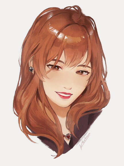 Her hair is wavy and falls to her waist, naturally black but regularly dyed so that it lightens toward the ends, with darker roots at the crown of her head. The result is a soft sandy caramel shade that can appear faintly red under certain lighting, reminiscent of Luke Pearce’s hair color.